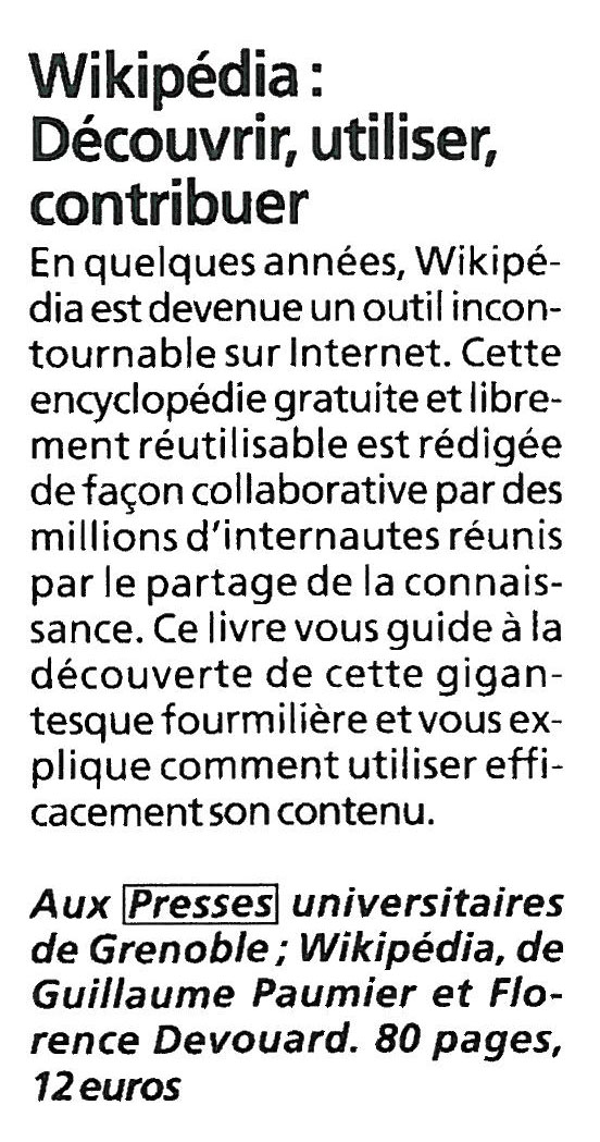 En quelques années, Wikipédia est devenue un outil incontournable sur Internet. Cette encyclopédie gratuite et librement réutilisable est rédigée de façon collaborative par des millions d’internautes réunis par une même passion : le partage de la connaissance. Ce livre vous guide à la découverte de cette gigantesque fourmilière et vous explique comment utiliser efficacement son contenu. Il vous incite ensuite à devenir acteur et à participer à la rédaction de l’encyclopédie, quels que soient votre âge et vos domaines de compétences. Tout au long de ce guide, des fiches pratiques vous permettent de mettre directement en application les explications données, tout en vous habituant à l’interface et à l’environnement de Wikipédia. Cet ouvrage est le premier guide de Wikipédia en français écrit par des participants actifs, impliqués dans la communauté de Wikipédia. Le contenu de ce livre est publié sous la licence libre de Wikipédia (GFDL), afin de rester cohérent avec le fonctionnement et les valeurs de l’encyclopédie.