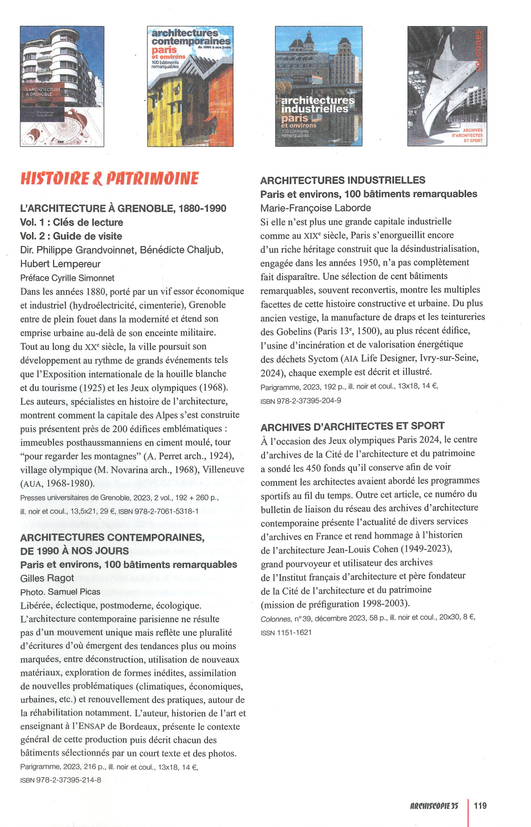 • Le second volume, véritable guide de visite, nous conduit à découvrir la ville à travers une sélection très illustrée de 200 bâtiments emblématiques du patrimoine architectural du Grenoble de l’époque.