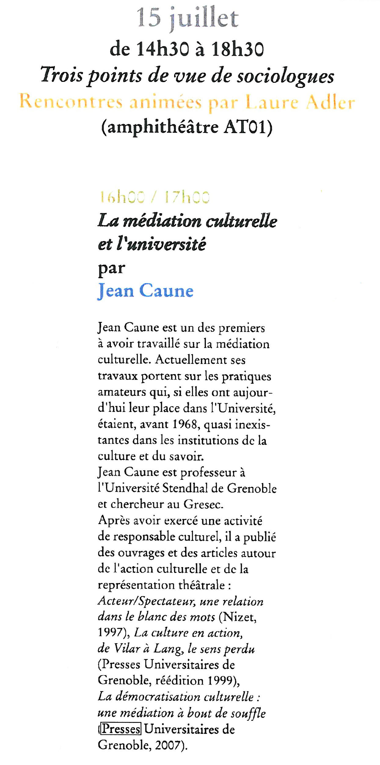 Jean Caune est professeur émérite d’université, docteur en troisième cycle en esthétique et sciences de l’art, et docteur d’État en sciences de la communication. Après des études d’ingénieur chimiste, il s’est engagé dans une carrière de comédien et a exercé une activité de metteur en scène et de directeur de maison de la culture.