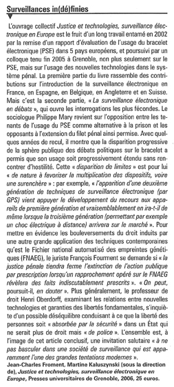 Seront plus spécifiquement ici évoquées les expériences de placement sous surveillance électronique en Europe ainsi que les débats et les problématiques qui les accompagnent. La question principale consiste à se demander si le développement des nouvelles technologies n’accompagne pas des mouvements de recomposition de l’action de l’État dans les champs du pénal et de la sécurité. Or précisément, de ce point de vue, le bracelet électronique traduit une réorganisation des formes d’expression de la puissance publique qui, plutôt que de s’incarner, comme elle l’a longtemps fait, dans des institutions et des hommes sur un territoire public donné, semble peu à peu s’inscrire et se diffuser dans la société.