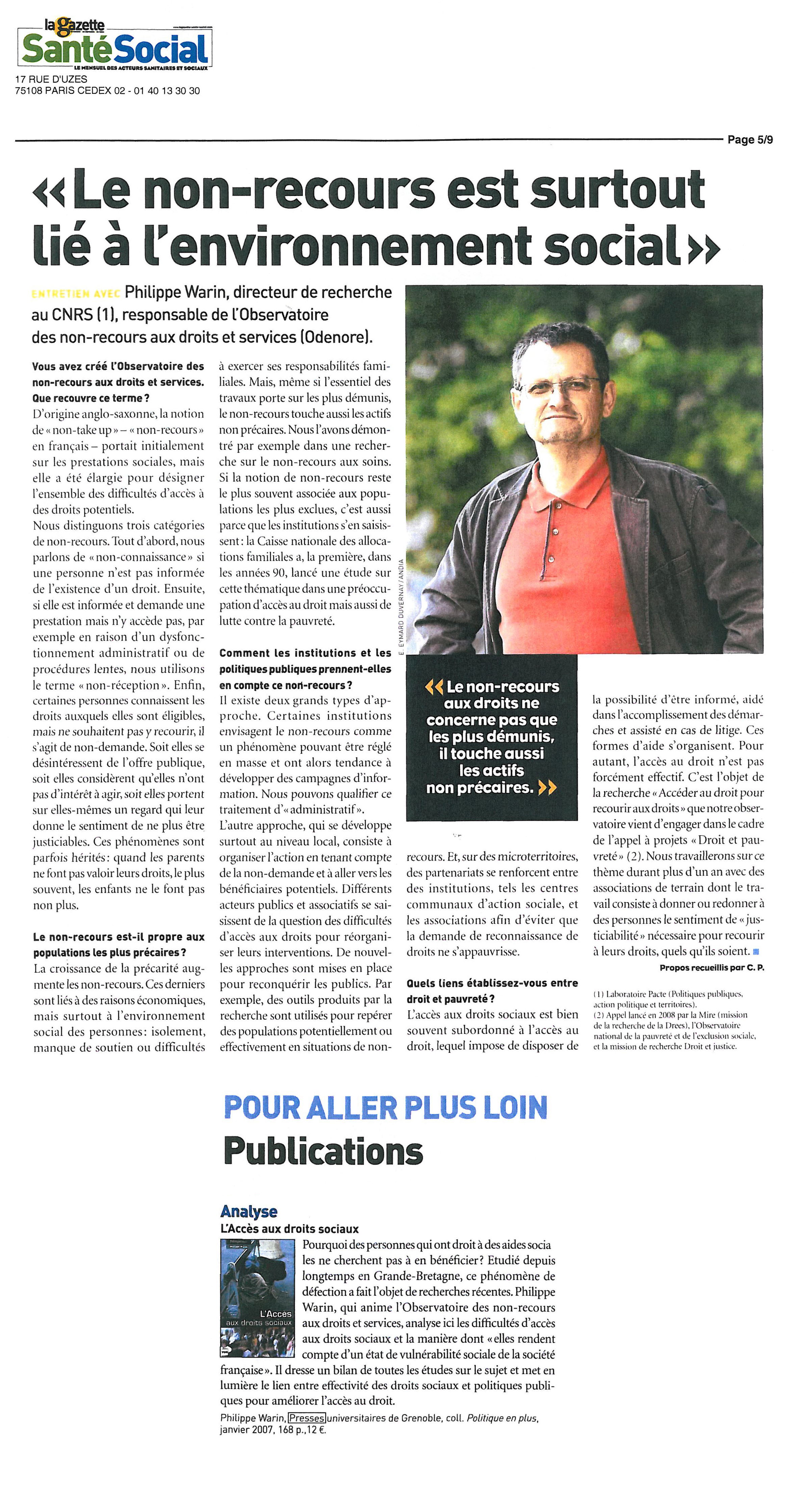 Philippe Warin, directeur de recherche au Cnrs et enseignant à l’Institut d’études politiques de Grenoble, travaille sur la réception des politiques publiques par leurs destinataires. Auteur de plusieurs ouvrages sur les services publics, il anime l’Observatoire des non-recours aux droits et services.