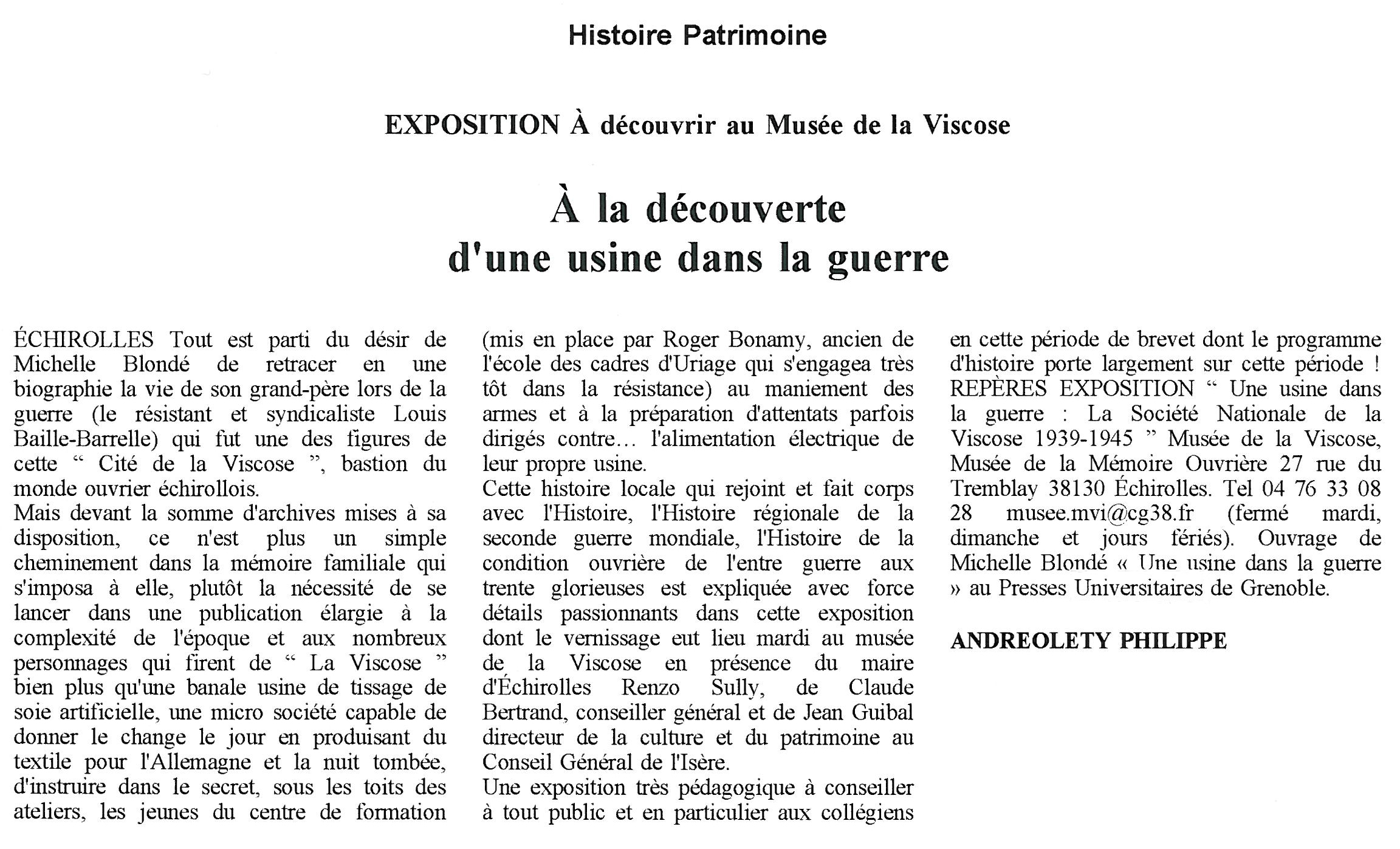 La Société nationale de la Viscose à Grenoble, 1939-1945