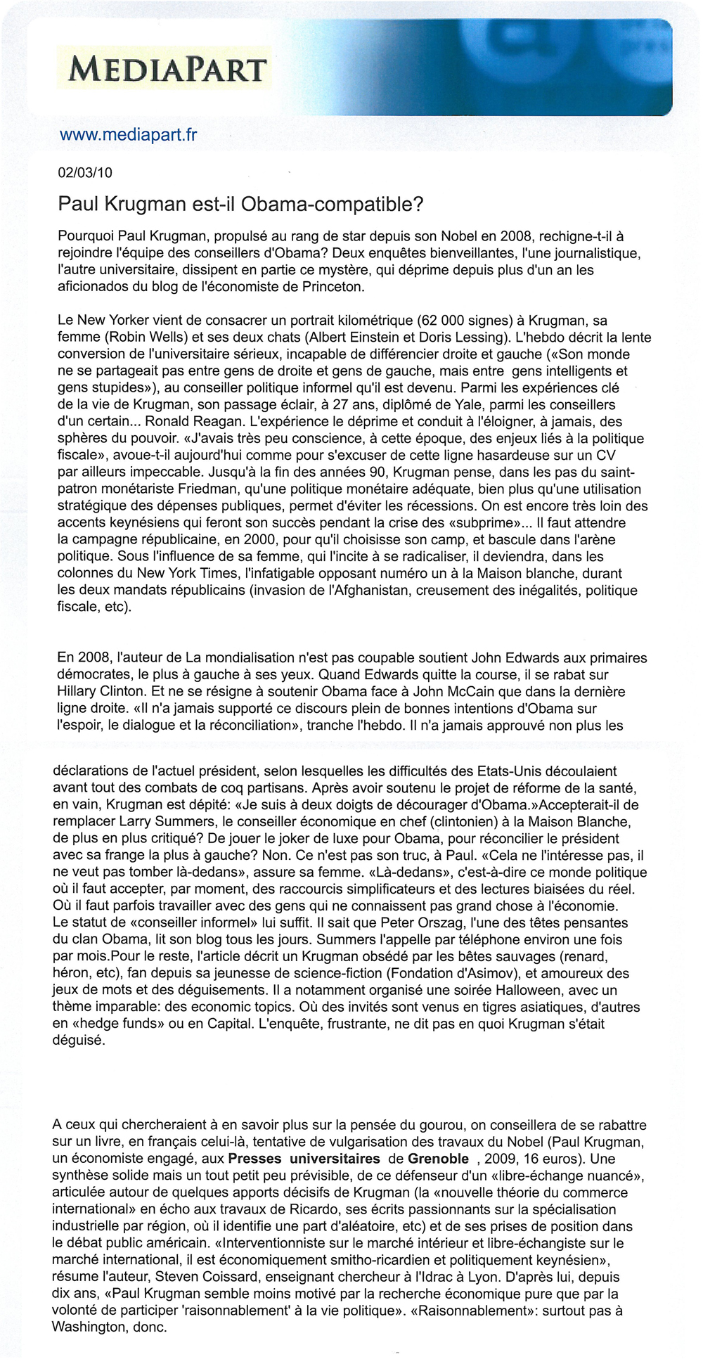Plus connu pour ses positions libérales (au sens anglophone du terme) et critiques à l’égard du gouvernement de G.W. Bush, le professeur de Princeton est devenu incontournable sur la scène politique américaine.