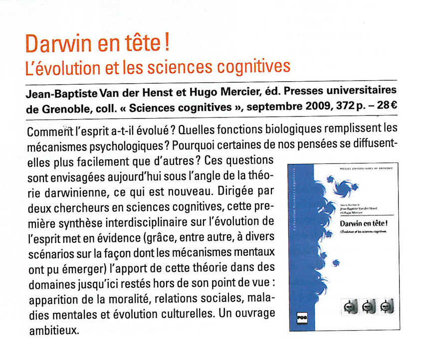 Comment l’esprit a-t-il évolué ? Quelles fonctions biologiques remplissent les mécanismes psychologiques ? Pourquoi certaines de nos pensées se diffusent-elles plus facilement que d’autres ?