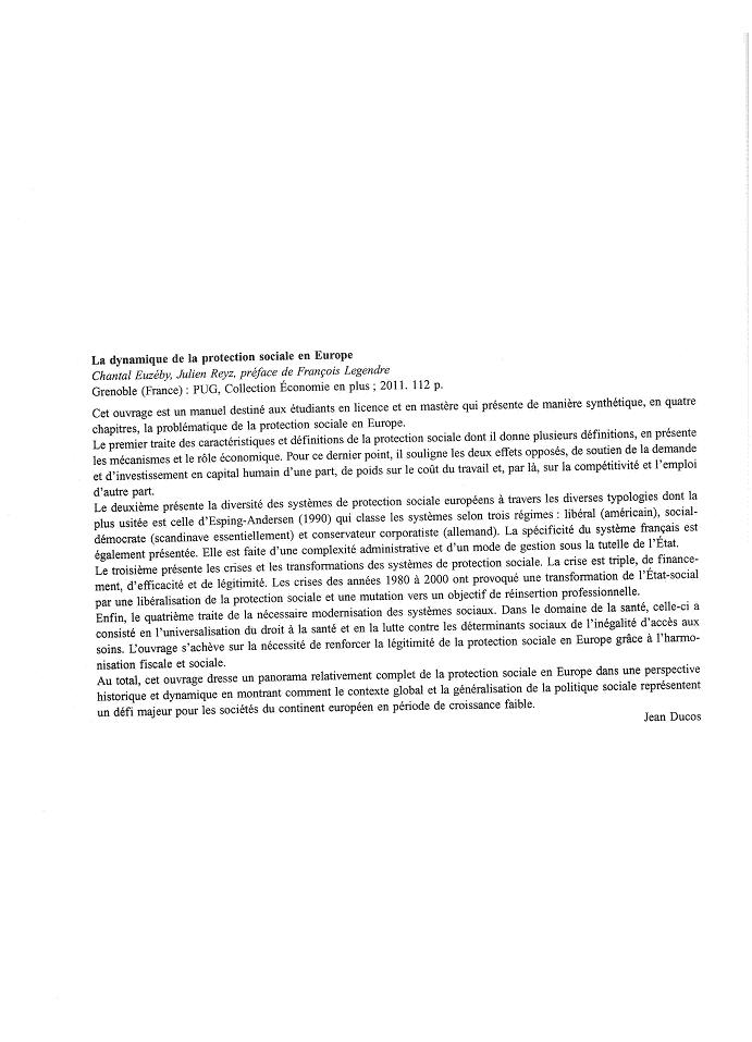 Chantal Euzéby est professeur émérite de sciences économiques à l’université Pierre-Mendès-France de Grenoble, présidente du comité de rédaction de la Revue internationale de sécurité sociale (Genève).