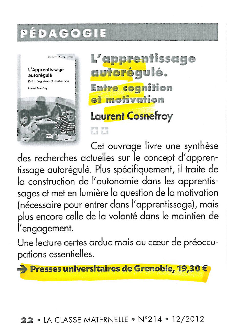 C’est à cette question que tentent de répondre les recherches autour du concept d’« apprentissage autorégulé » dont l’ouvrage livrera une synthèse. L’intérêt et l’originalité de ces recherches est de décaler quelque peu le regard habituel porté par les recherches sur la motivation – l’orientation de la conduite, le choix de l’activité – pour s’intéresser prioritairement au maintien de l’engagement une fois entré dans l’activité : il ne suffit pas d’être motivé pour atteindre les buts fixés, il convient aussi d’entretenir cette motivation, de protéger l’intention d’apprendre et de soutenir l’effort. Les recherches sur l’apprentissage autorégulé conduisent ainsi à reprendre et à développer le concept de volition, ou acte de volonté, auquel très peu de travaux ont été consacrés dans la littérature francophone.