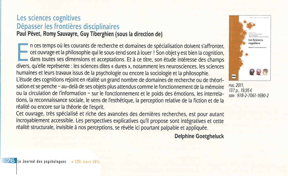 Ont également participé à cet ouvrage : Nathalie Blanc, Yannick Bressan, Jean-Christophe Cassel, Cyril Dubois, Daniel Gounot, Rémy Lestienne, Pierre Livet, Marie-Noëlle Metz-Lutz, Hélène Otzenberger, Rudolph Sock et Bruno Trentini